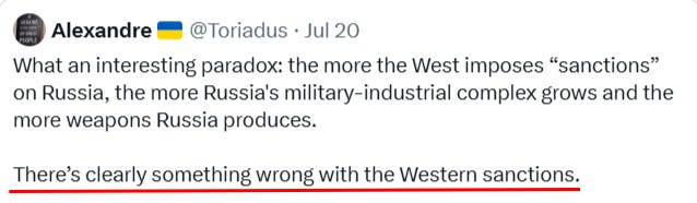 More and more Ukrainian commentators and political figures are cottoning on to the fact that “sanctions” were always nothing more than a desperate and hollow performative act: