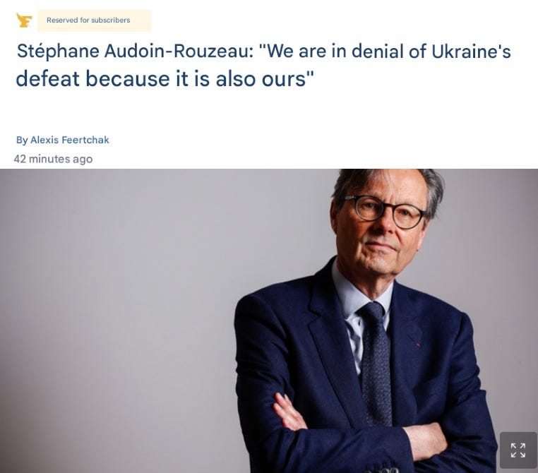 Indeed, as we speak, Ukraine unfortunately seems to have lost the war,probably as early as the summer of 2023, when it became clear that its long-awaited counter-offensive had failed. One could imagine a spectacular turnaround, but it's not clear how. Of course, when you say this, people are shocked because it's unbearable to think that Ukraine has lost the war. It's unbearable for me too.