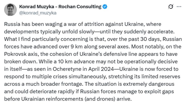 On that note, Russia again launched one of the largest attacks of the war last night—at least according to frenetic Ukrainian commentators who, admittedly, could be playing things up for dramatic effect to curry sympathy: