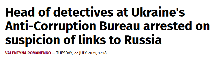 Sensing the plan, Zelensky moved to preemptively begin hamstringing the corruption watchdogs. He arrested the ‘head of detectives’ at NABU under the trumped-up suspicion of spying for Russia, not long before submitting the bill to the Rada to effect a ‘hostile takeover’ of these “independent” organizations, putting them under total state control.