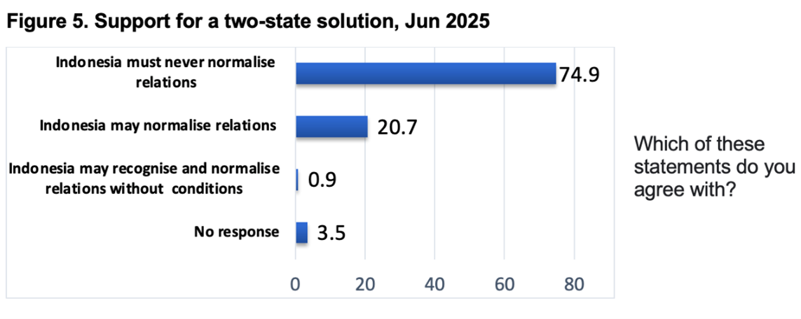 A whopping 74.9 per cent of those surveyed in June argued that Indonesia should never establish diplomatic relations with Israel or recognise the Jewish state.