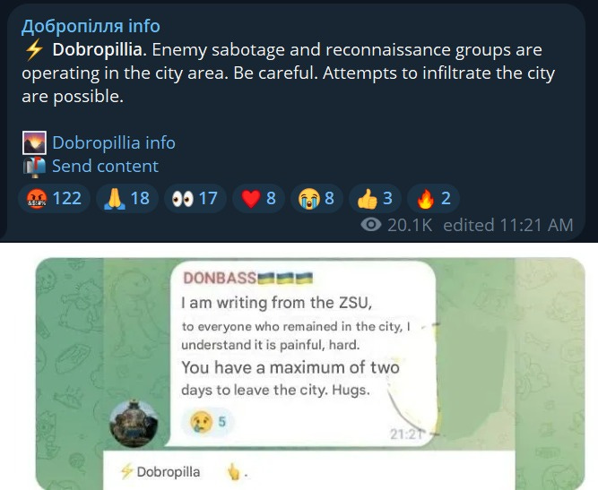 Also, though Russian forces have reportedly captured Nova Shakhove—though it’s not completely verified yet, and these may be advanced units that will pull back—there is also rumor that Russian “DRGs” are already operating on the outskirts of the critical town of Dobropillya: