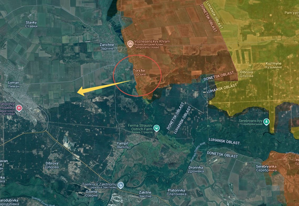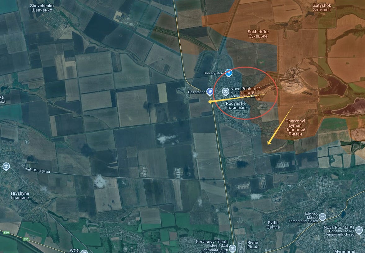 And north of Torske, Russian forces have been moving even much faster in the area south of Ridkodub.