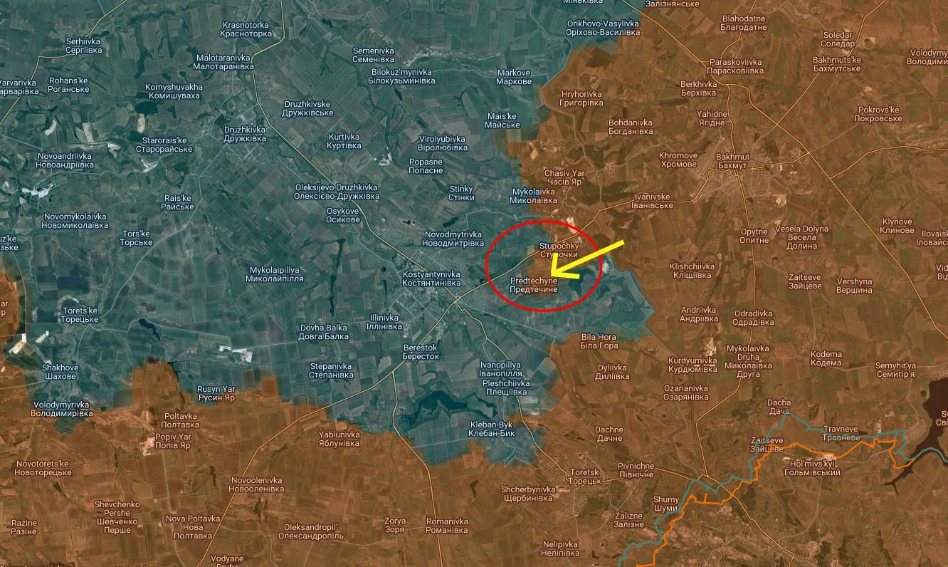 Getting back to the front, one other thing that no one has mentioned is that in neighboring Konstantinovka, also quickly turning critical for the AFU, Russian forces have reportedly made another fairly large breakthrough after capturing Chasov Yar. They have now taken Stupochky and Predtechyne, seen below: