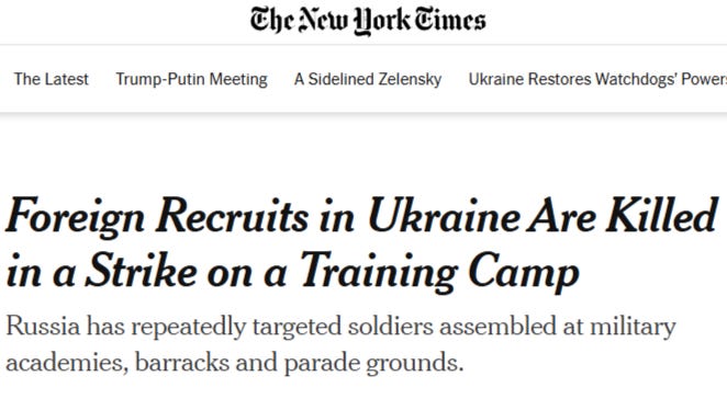 Another NYT piece details a new Russian strike—which is actually the second in the past two weeks—that wiped out a Ukrainian troop concentration: