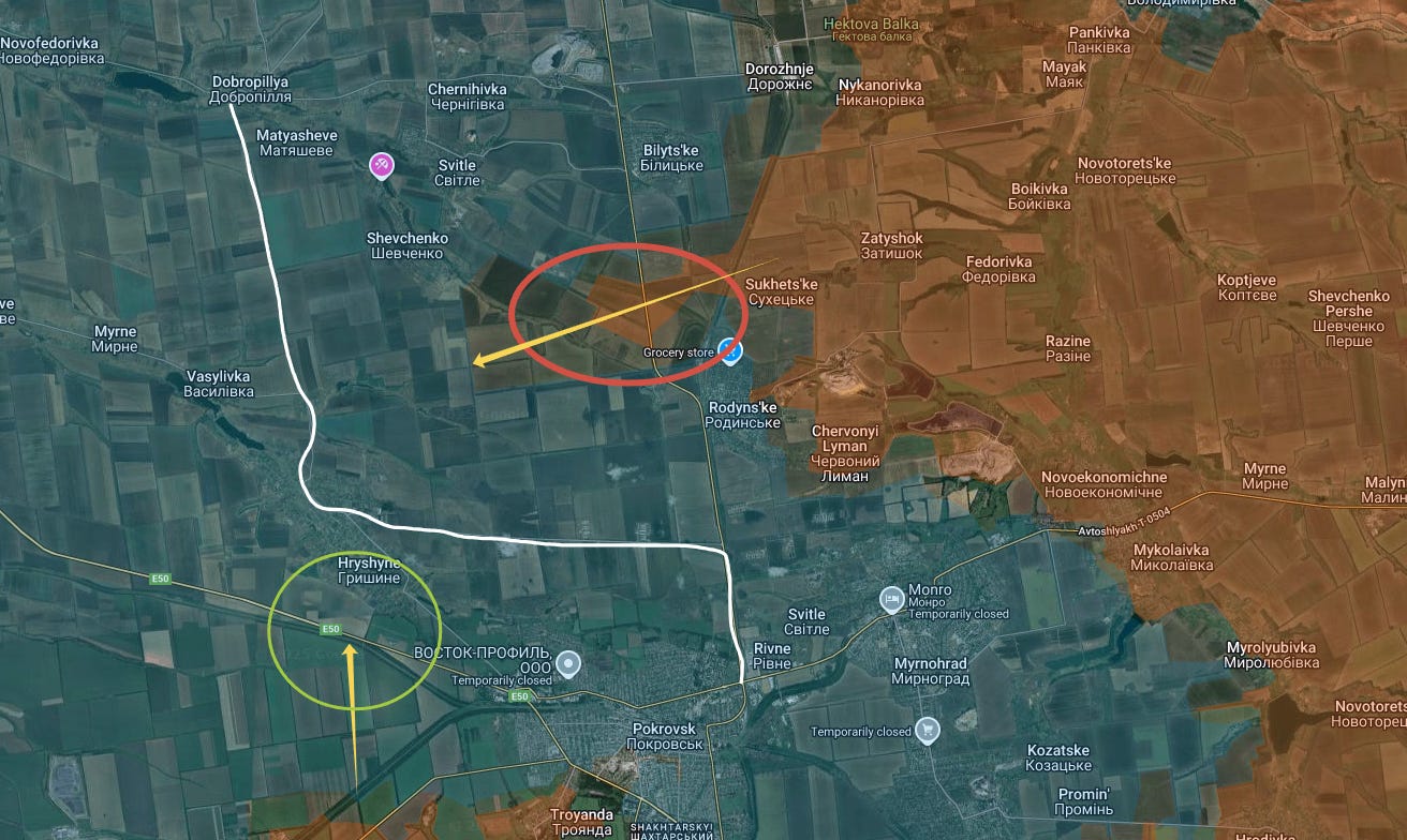 There is still no absolute certainty precisely where the line of control is, but what apparently has been confirmed is that the main Dobropillya-Pokrovsk highway has been breached and totally cut by Russian forces just north of Rodinske, which itself is being stormed: