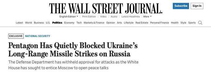 And let’s not forget the simultaneously contradictory announcement that Ukraine’s long-range strikes using US systems or assets have allegedly been blocked: