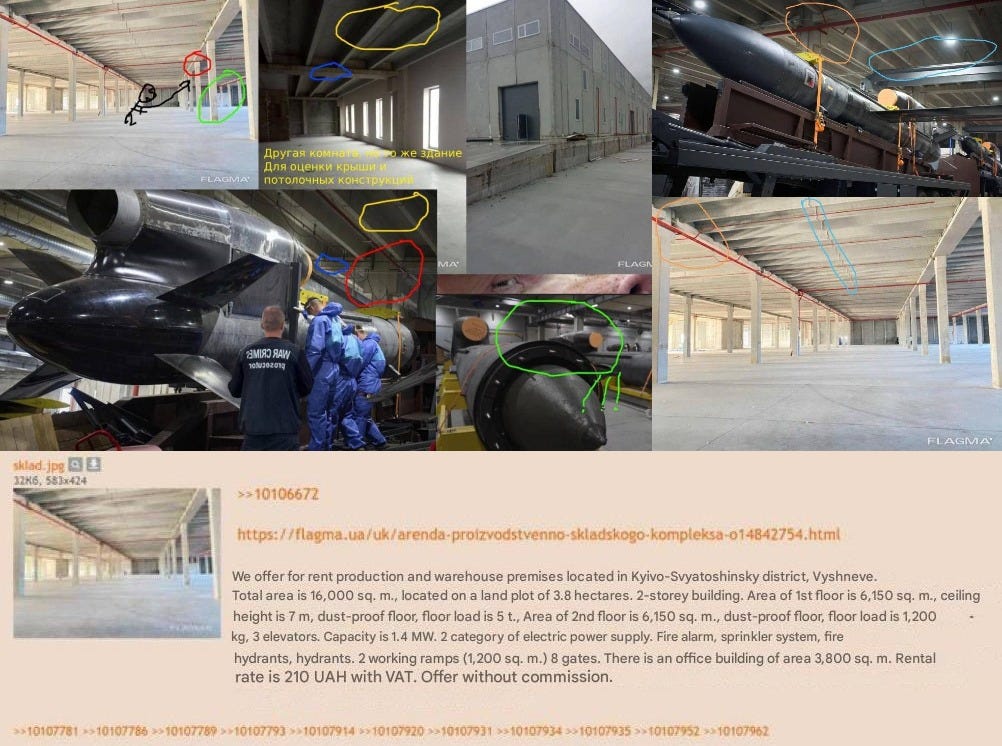 Apparently to deflect links to the British missile, Ukraine released faked photos of the Flamingo being manufactured in what was claimed to be a Ukrainian production line. But not long after this, intrepid Russian investigators geolocated the building from clues in the photos and found that the building was being offered for rentals on a warehouse rental site, leading to the conclusion that Ukraine had rented the site to stage these already-made missiles there in order to portray it as an indigenous manufacturing line: