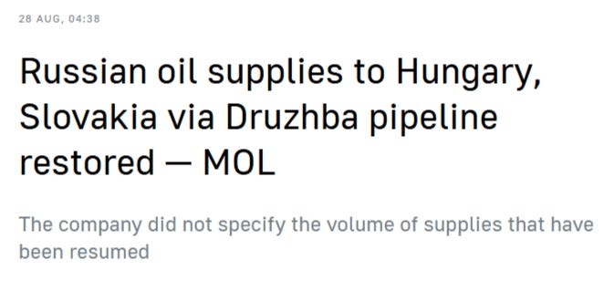 And keep in mind, this Bryansk pumping station point of the pipeline was hit not once, but three times in the span between August 12th and 23rd, and even the damage from this score of strikes was able to be restored in six days. Granted, those six days reportedly still left Hungary and Slovakia critically low on oil, but it simply goes to show how ultimately inconsequential and fleeting many of these strikes are, producing little more than brief PR moments.