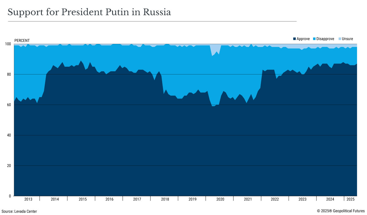 Vladimir Putin’s approval ratings remain high, and there is a noted