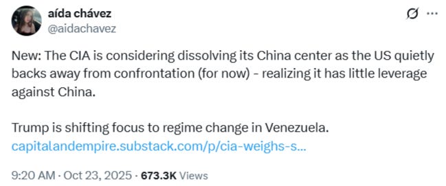In support of the main idea that the US might be shifting away from, rather than toward, confronting China in the inevitable clash of superpowers everyone seems to be awaiting, journalist Aida Chavez claims sources have informed her the CIA is considering shuttering its China mission: