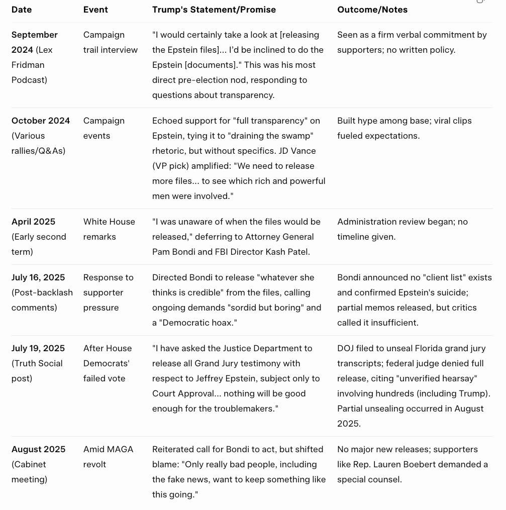 Donald Trump has a rape problem that involves Israel and it is sinking his Presidency. First was his decision to not release the Epstein files, nothwithstanding his prior campaign promise to do so, because those files reportedly implicate Israel in espionage activity that involved Epstein gathering compromising material on prominent businessmen, bankers and politicians. Here’s a timeline of Trump’s political evolution regarding Epstein: