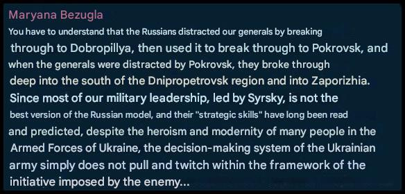 As an addendum, Ukrainian People’s Deputy Maryana Bezugla describes how it was that Russian tactics led to the capture of Pokrovsk: