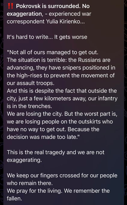At the same time, we had this fascinating new description of fighting in Pokrovsk from top Ukrainian analyst Myroshnykov, which further underscores the above: