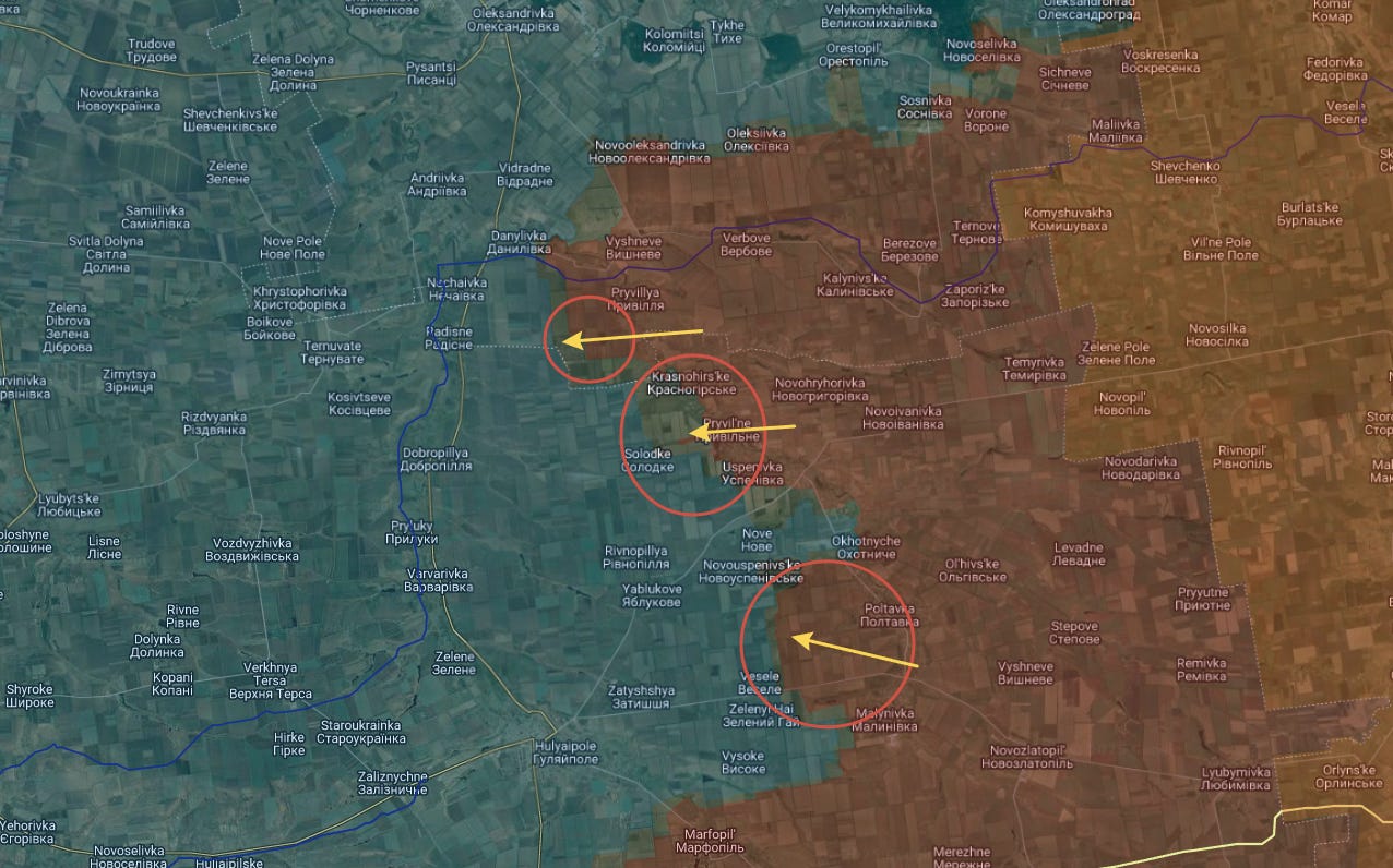 The most impressive advances again came on the Yanchur river line in the Gulyaipole direction. Russian forces finally crashed the Yanchur river in full, taking virtually everything on it western bank and pushing across the plains there: