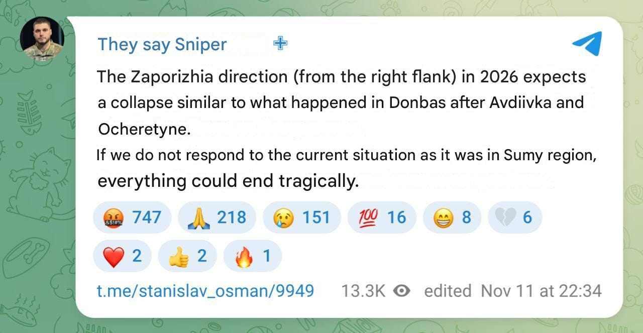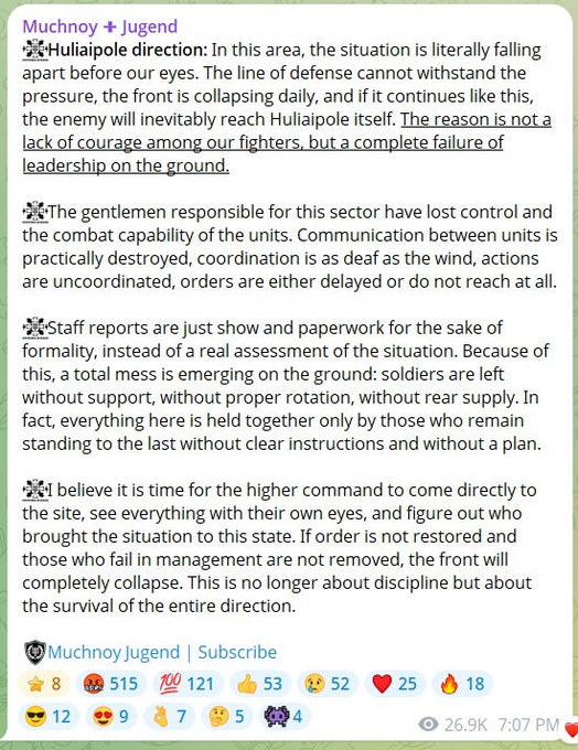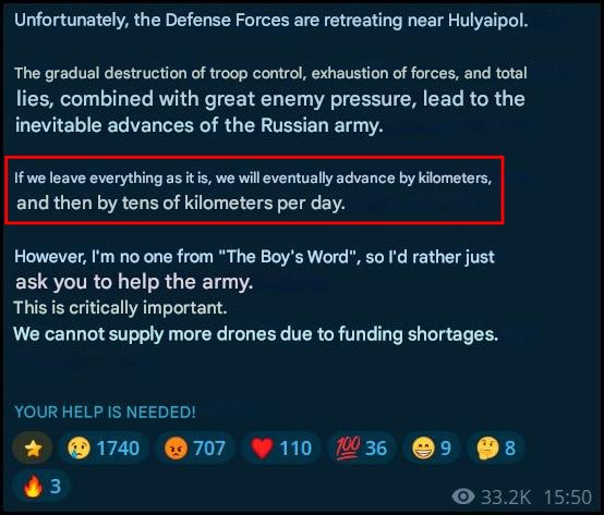 More top Ukrainian military accounts comment on the disastrously collapsing situation: