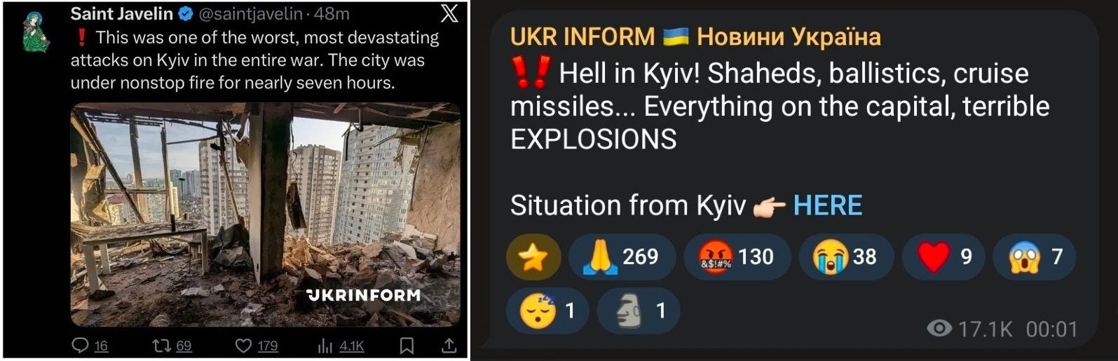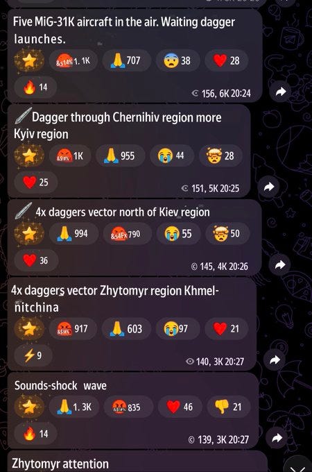 Photos of spent Patriot booster stages were seen, but apparently the missiles did little against the hypersonic Kinzhal barrage. That’s not to mention given what we now know, there’s good chance the Patriots themselves were hit, or will be soon.