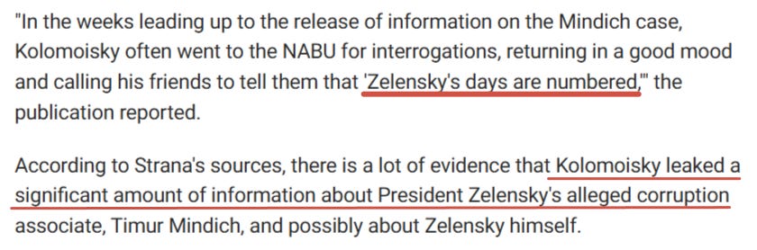 Rumors are that the latest is being driven by billionaire former-sponsor Kolomoisky, who himself has just stated from his pre-trial detention that he believes Zelensky’s days are now numbered.
