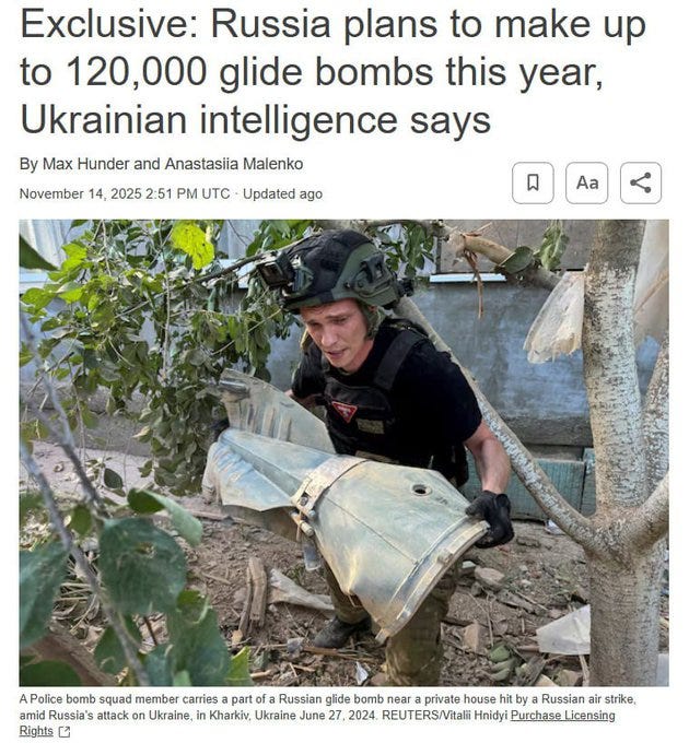 Meanwhile, Ukrainian sources state Russia is on track to manufacture a mind-numbing 120,000 glide-bombs in the coming year: