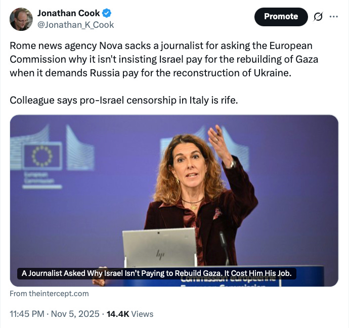 In its severest form, that means Israel simply refuses journalists access to certain areas, as it has done for two years in Gaza. Or it can require them to embed with the Israeli military, as the BBC has done on several occasions during the Gaza genocide. Or it can demand that journalists don’t tell important facts about what is going on.