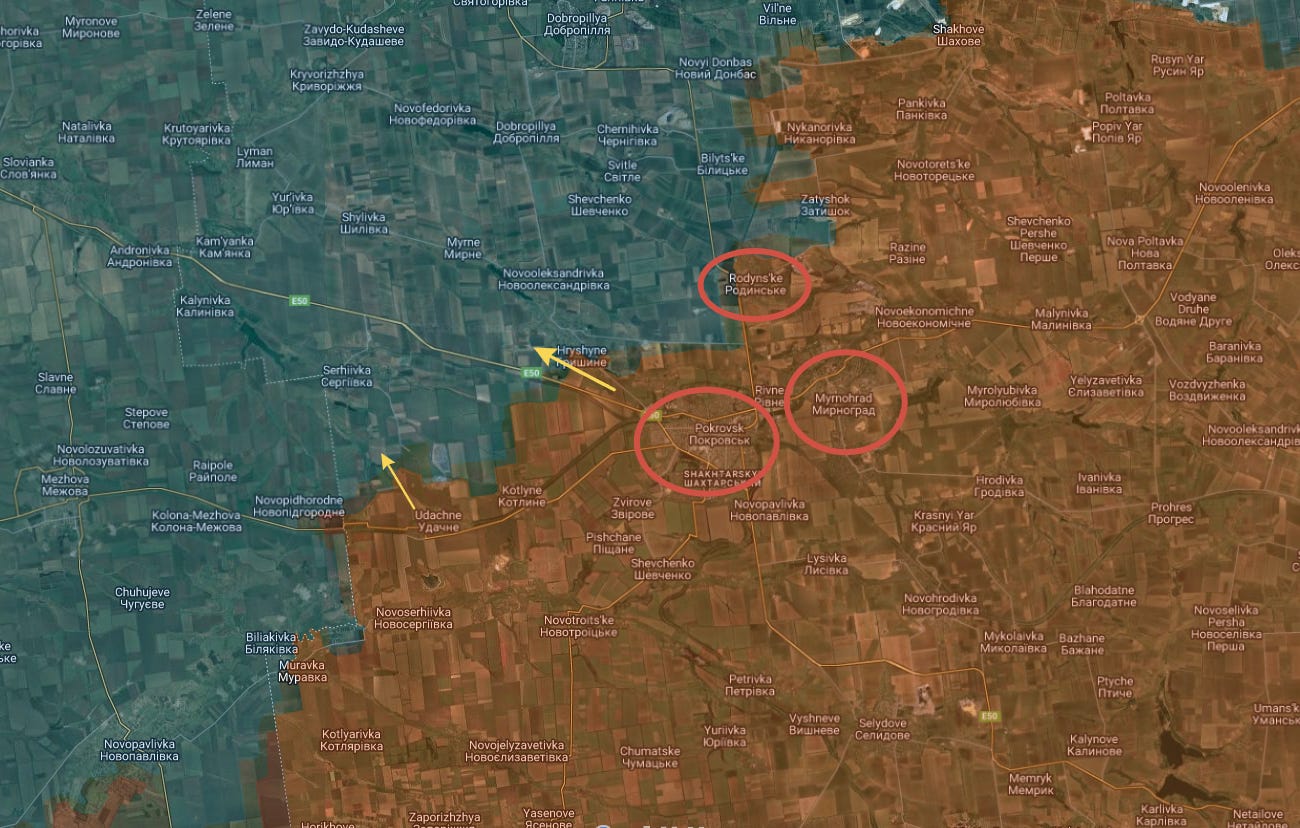 The map now looks like so, with Pokrovsk, Mirnograd, and even Rodynske to the north captured: