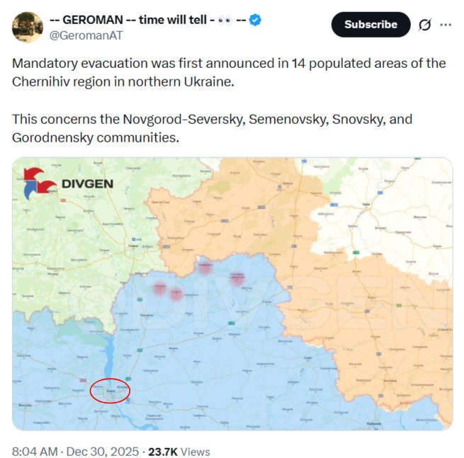 For instance, there were reports today that many settlements in the Chernigov region were issuing mandatory evacuations for some unknown reason: