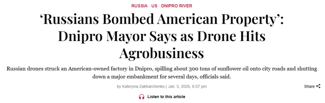 And just in the past two days alone, again major US assets were said to be hit. In Dnipro, the US-owned Oleina sunflower oil plant was ripped by a drone attack.