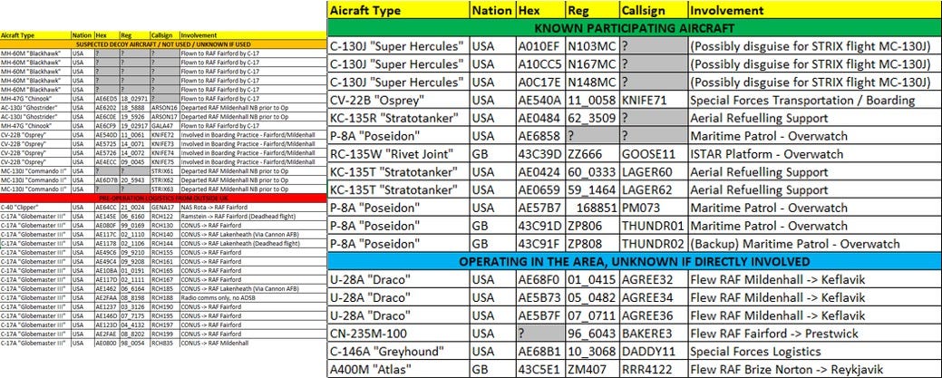 We know of RAF involvement & I've detailed the US aircraft we know have flown into the area and those we suspect were involved!