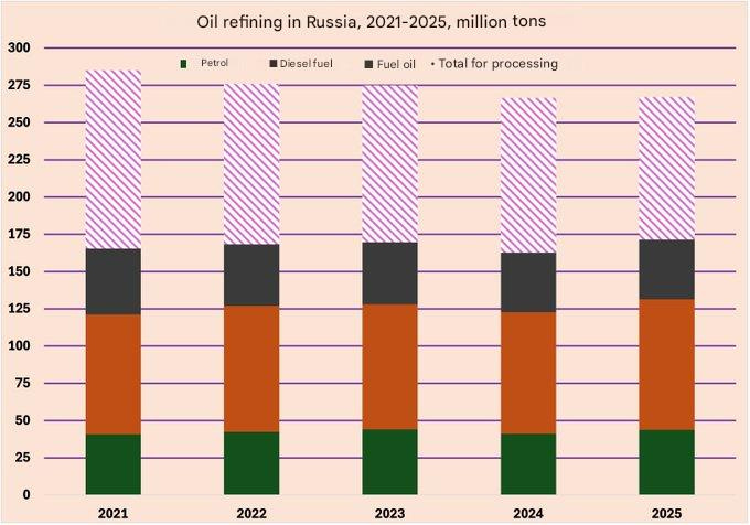 The economic impact of Ukraine’s deep strikes inside Russia doesn’t even come close to the devastating damage Russia inflicts on Ukrainians every day. Russia’s oil refining sector is heavily subsidized — these refineries mainly serve the domestic market and contribute nothing to the federal budget. On top of that, they are repaired after each attack. Meanwhile, Russia’s own export ban on certain petroleum products actually led to a reported increase in production in 2025.