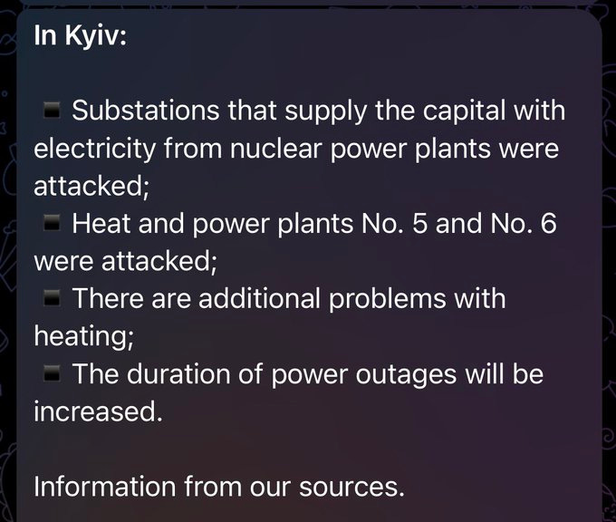 Today again we start off with a major Russian strike that occurred as promised. In the last article two days ago we said Russia was readying a new strike, and it delivered. But what is most notable about this one is that it also fulfilled the ‘rumors’ we were hearing from Ukraine’s experts—like that of Serhiy ‘Flash’—that Russia could soon start disconnecting the “final” source of Ukrainian power, which is the nuclear power plants.