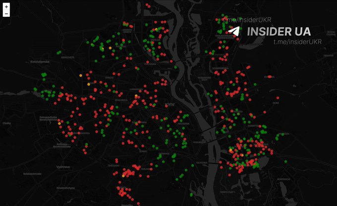 A Ukrainian source generated this map showing Kiev’s current outage, with red representing outage areas: