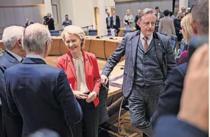 Below: European Commission president Ursula von der Leyen talks with Belgium’s Prime Minister Bart De Wever — leaders unlikely to forget the US president’s threats over Greenland