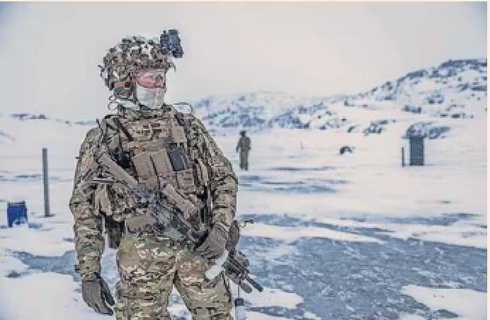 Below: a Danish soldier takes part in an exercise in Greenland.