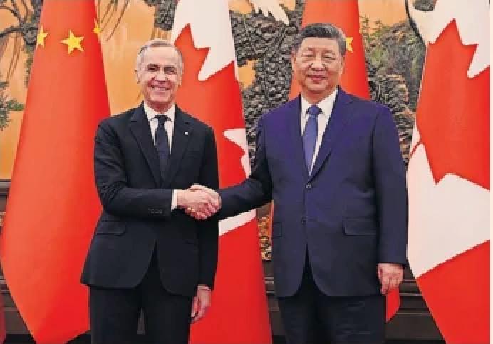 Bottom: Canada’s Mark Carney meets China’s Xi Jinping in Beijing this month