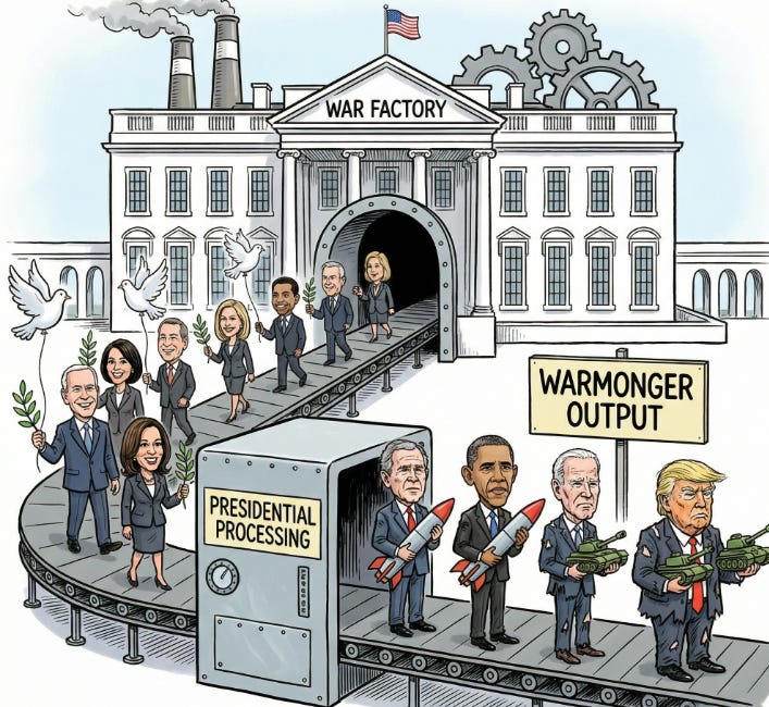 Decades of bipartisan warmongering make it painfully obvious that no president who reaches the White House with vows of peace is constrained by them once in power.