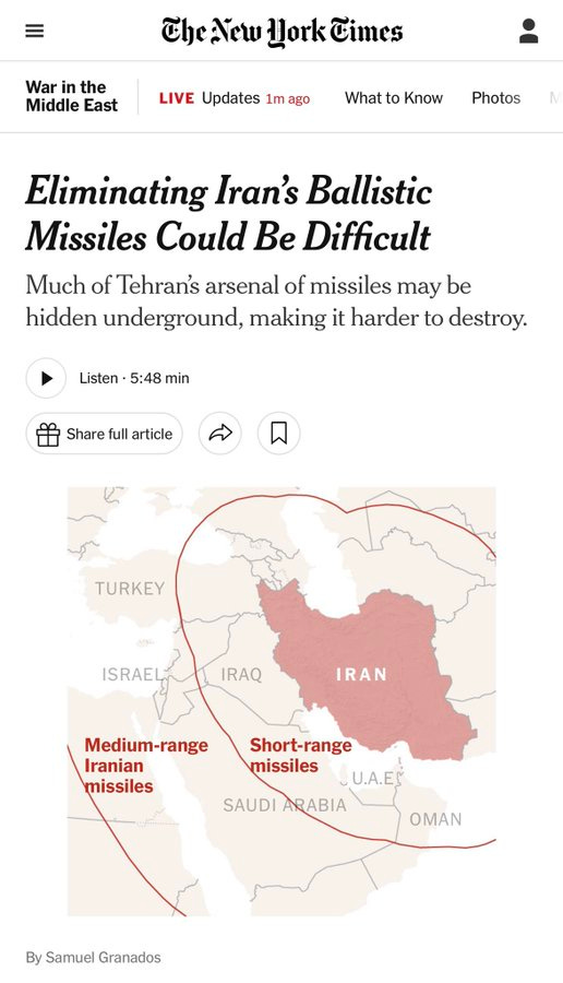 NYT is not so confident about the prospects of taking out Iran’s ballistics: