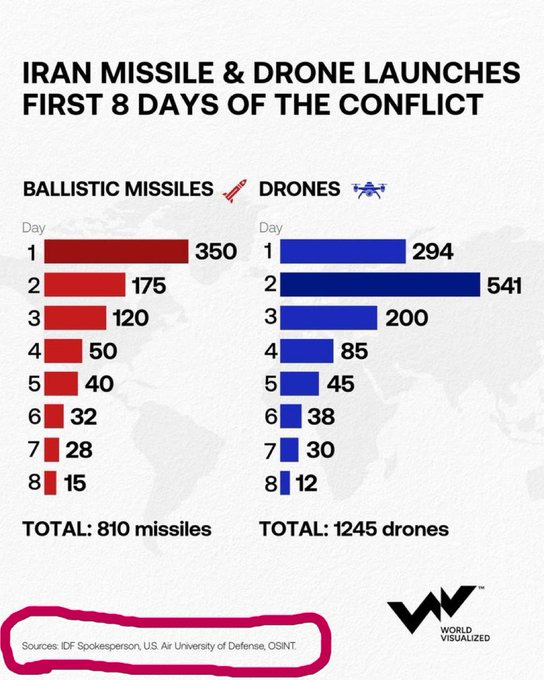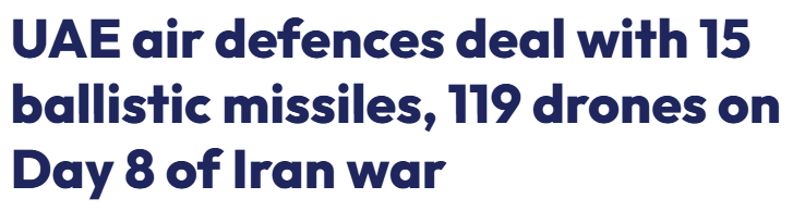 As can be seen, UAE alone reports 15 ballistics and nearly 120 drones launched just at them today, whereas some “official” statistics are showing roughly that amount as total fired by Iran into every direction. If the disparity is true, we’re looking at several orders of magnitude of potential discrepancies between “official” statistics and real launches.