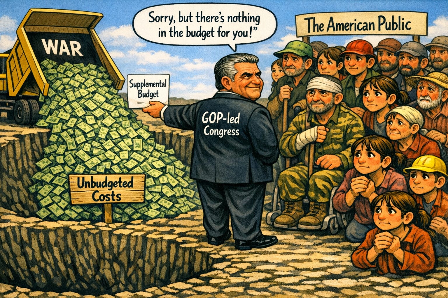 There are a lot of things to consider when a nation goes to war, chief among them the human cost on all sides of the conflict. The US is currently involved in military operations on multiple fronts. Because the human toll is mostly being borne by those who are the target of these operations—hundreds of ‘suspected drug dealers’ in the Caribbean and Latin America, and over a thousand Iranians in Operation Epic Fury—some Americans are cheering the display of American power and military might. That we would find joy in so much death is disturbing in itself, but that this would distract us from the price we’re paying in monetary terms is almost as disturbing.